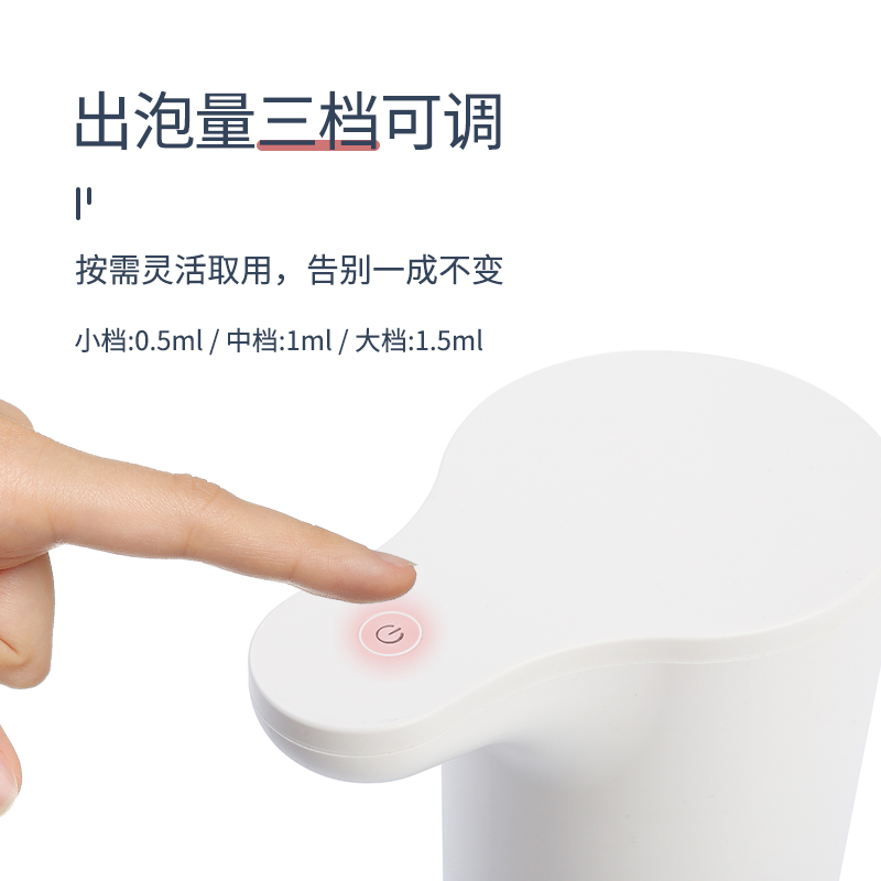 小泡泡感應(yīng)泡沫皂液器33605型號:G33605防水等級:IPX6主題:簡約時尚小泡泡 | 不止是泡沫器,更是浴室藝術(shù)功能介紹:第四代皂液器告別手動給皂,洗手進入自動泡沫新時代免接觸使用,讓每一次洗手更潔凈,呵護全家健康280ml皂液可替換設(shè)計,適用大部分給皂液空氣注入技術(shù),微米級豐盈泡沫氣泡比12:1靈動(Liteon)雙感應(yīng)技術(shù),超低功耗,USB可充電設(shè)計,6個月持久續(xù)航精密微型電機,能耗更低